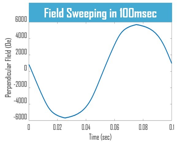 The sweeping rate of the magnetic field is controllable in amplitude, and angle at sweep rates up to 10,000 step samples per second.